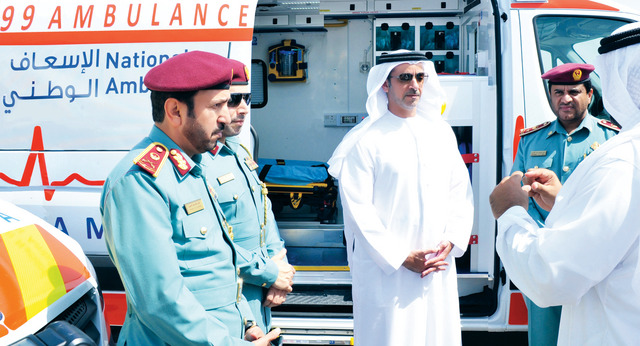 وحث سموه الجمهور على تقييم الخدمة الجديدة عبر موقع الوزارة الإلكتروني وإبداء الملاحظات والرأي بشأنها بغية مواصلة التحديث والتطوير المستمرين. وحضر عرض الجاهزية اللواء ناصر لخريباني النعيمي الأمين العام لمكتب سمو نائب رئيس مجلس الوزراء وزير الداخلية واللواء الدكتور أحمد ناصر الريسي مدير عام العمليات المركزية بشرطة أبوظبي والعميد علي خلفان الظاهري مدير عام شؤون القيادة لشرطة أبوظبي والعقيد هلال المزروعي مدير إدارة شؤون السلامة العامة والتدخل السريع في الأمانة العامة لمكتب سمو نائب رئيس مجلس الوزراء وزير الداخلية رئيس اللجنة الإشرافية على مشروع خدمات الإسعاف في المناطق الشمالية والعقيد سعود الساعدي مدير سكرتارية مكتب سمو الوزير والمقدم محمد إبراهيم العامري رئيس مجلس إدارة شركة الإسعاف الوطني وروبرت بول الرئيس التنفيذي وأحمد الهاجري نائب الرئيس التنفيذي وجراهام استيورت مدير العمليات والدكتور فيرجال كامنز رئيس المستشارين الطبيين وفهد برباع مدير التطوير والعلاقات الخارجية.