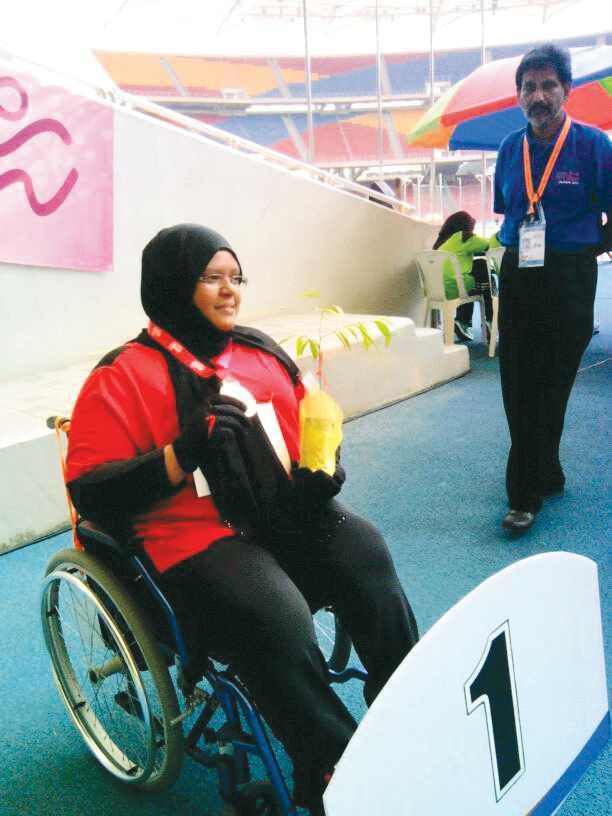 وتضيف سارة الكعبي قائلة: إلى جانب دراستي الجامعية، فأنا أيضاً أحب الرياضة وخاصة ألعاب القوى، وقد مثلت بلدي في بطولة الشباب المعاقين في ماليزيا عام 2012 وحصلت على الميدالية الذهبية وميداليتين برونزيتين، كما حققت في رمي القرص رقماً قياسياً لأول مرة في البطولة تحققه فتاة إماراتية، والرقم القياسي هو 18.22 متراً في بطولة رمي القرص في ماليزيا، والآن أشارك في ألعاب القوى من خلال نادي الثقة للمعاقين في الشارقة، الذي يوفر لكل المعاقين سبل الراحة والرعاية الكاملة، إلى جانب توفير المدربين لكل الألعاب الرياضية.