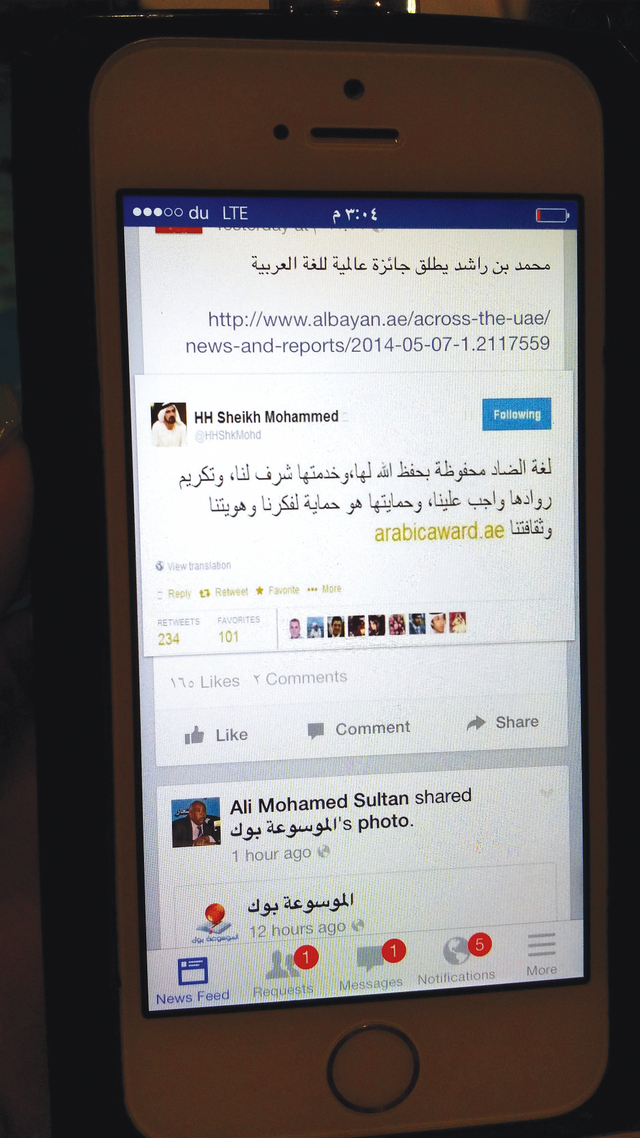 تفاعلت مواقع التواصل الاجتماعي مع «جائزة محمد بن راشد للغة العربية» العالمية التي أطلقها صاحب السمو الشيخ محمد بن راشد آل مكتوم، نائب رئيس الدولة، رئيس مجلس الوزراء، حاكم دبي، رعاه الله، لتعزيز مكانة لغة الضاد عالمياً، إذ أكد مغردو «تويتر» أن الجائزة تستعيد مكانة اللغة العربية على الساحة، وبخاصة أن اللغة الإنجليزية احتلت مكانها في حياتنا اليومية، سواء بالحديث أو الكتابة، ودخلت لهجة غريبة على ساحتنا، تتناقلها فئة الشباب، وتعرف باسم «الإنجليزي المعرب».