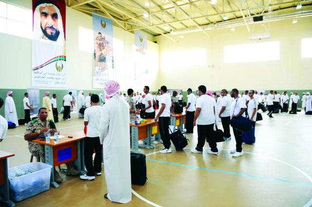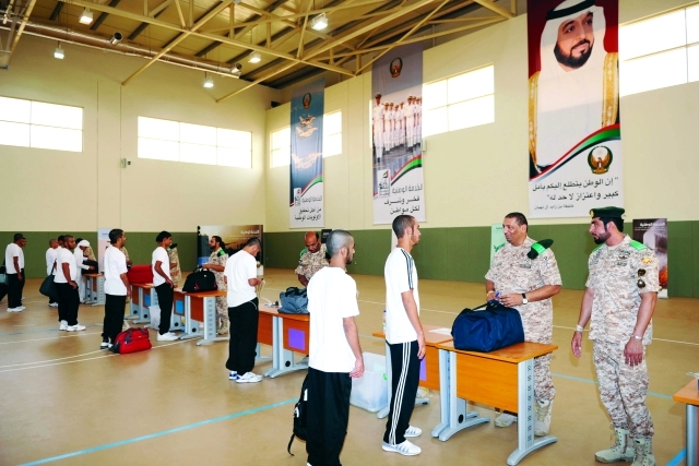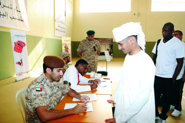 صورة أخرى من صور الإقدام على أداء الواجب وتلبية نداء الوطن رصدتها «البيان» في معسكر القوات المسلحة في منطقة المنامة بعجمان، فمنذ الساعة الثامنة من صباح أمس استقبل المعسكر أفواجاً من مجندي الدفعة الأولى للخدمة الوطنية الذين أكدوا سعادتهم وفخرهم بأداء الواجب للحفاظ على مكتسبات الوطن الغالي الذي وفر لهم بفضل توجيهات القيادة الرشيدة سبل العيش الكريم والرفاهية.