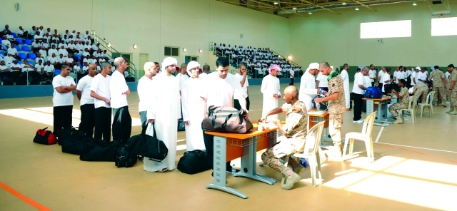 وقد وصل المجندون في ساعات الصباح الباكر يحملون أمتعتهم ويستمعون إلى نصائح أولياء أمورهم بأهمية التحلي بالصبر والعزيمة والفخر لأداء الخدمة الوطنية ، وتحلى حماة الوطن بروح معنوية عالية ، وتم استقبالهم داخل قاعة كبيرة وتوزيعهم مجموعات وفق النظام العسكري وتهيئتهم من أجل الانخراط في برامج التدريب العسكري.
