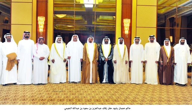 شهد صاحب السمو الشيخ حميد بن راشد النعيمي عضو المجلس الأعلى حاكم عجمان، بحضور سمو الشيخ عمار بن حميد النعيمي ولي عهد عجمان، مساء أمس، حفل الاستقبال الذي أقامه الشيخ سعود بن عبدالله بن راشد النعيمي بمناسبة زفاف نجله الشيخ عبدالعزيز إلى كريمة الشيخ عبدالله بن فيصل بن سلطان القاسمي.