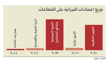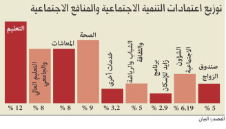 وقال وكيل وزارة المالية ان اعتمادات برامج ضمان الحقوق الاجتماعية وتفعيل الدمج المجتمعي بوزارة الشؤون الاجتماعية بلغت حوالي 3 مليارات درهم بنسبة 6.1% من اجمالي الميزانية للتأكيد على قيام الدولة برعاية الفئات التي تستحق الدعم وتقديم الإعانات إلى الفئات الخاصة التي تحتاج إلى الرعاية ..