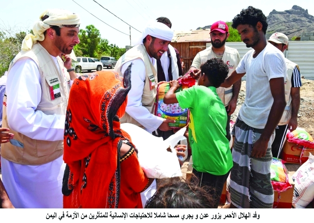 وقام وفد من هيئة الهلال الأحمر بزيارة إلى مدينة عدن جنوب اليمن وقف خلالها على طبيعة الأوضاع الإنسانية ميدانياً، واطلع على حجم الأضرار الإنسانية التي لحقت بالأشقاء اليمنيين.