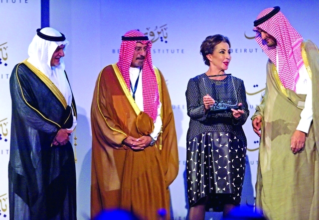 وزير الخارجية السعودي السابق، عميد الدبلوماسية العربية، وحرم صاحب السمو الشيخ الدكتور سلطان بن محمد القاسمي عضو المجلس الأعلى حاكم الشارقة، الشيخة جواهر بنت محمد القاسمي رئيسة المجلس الأعلى لشؤون الأسرة في إمارة الشارقة في دولة الإمارات العربية المتحدة، في وقت واصل المشاركون في قمة «بيروت انستيتيوت» التي استضافتها العاصمة أبوظبي على مدار يومين بفندق سانت ريجيس أبوظبي، بحضور أكثر من 200 شخصية إقليمية ودولية مناقشاتهم أمس لمجمل القضايا والمشكلات القائمة في المنطقة العربية..