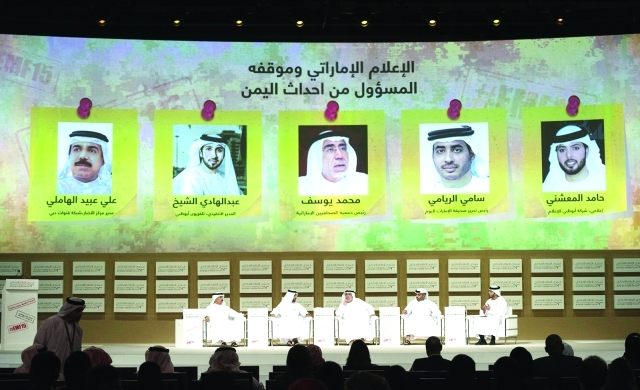 أعرب المشاركون في الجلسة الثانية من منتدى الاعلام الاماراتي 2015 والتي جاءت تحت عنوان «الإعلام الإماراتي وموقفه المسؤول من أحداث اليمن» عن تقديرهم لدور جيشنا الباسل وأكدوا أن أحداث حرب اليمن واستشهاد عدد من جنودنا البواسل فيها أفرزت ملحمة وطنية رائعة، تميزت بالتفاف الشعب حول قيادته ومثلت نموذجا للتلاحم الفريد بين الشعب والقيادة.