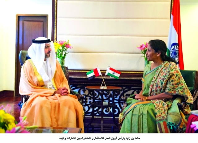 جاء ذلك خلال اجتماع فريق العمل الاستثماري المشترك بين الإمارات والهند، الذي استضافته نيودلهي أمس، وترأسه من جانب الدولة سمو الشيخ حامد بن زايد آل نهيان، ومن الجانب الهندي نيرمالا سيثارامان وزيرة التجارة والصناعة، وشارك فيه كبار المسؤولين وممثلون عن مؤسسات وشركات من كلا البلدين.