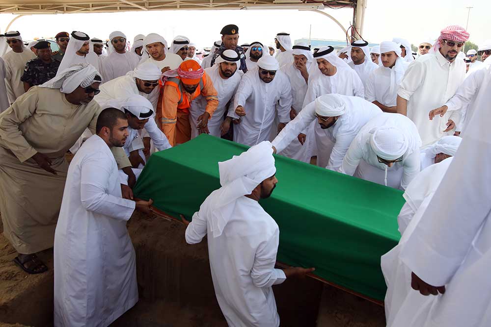 شيع أهالي الشارقة يتقدمهم معالي الشيخ نهيان بن مبارك آل نهيان وزير الثقافة والشباب وتنمية المجتمع، جثامين أميرة بن كرم رئيس مجلس سيدات الشارقة ومديرة القافلة الوردية ووالدتها وشقيقتها اللواتي قضين إثر حريق نشب في منزلهم عصر أمس بمنقطة القادسية، إذ توافد آلاف المعزين إلى مسجد الصحابة ظهرا، للصلاة على جثامين أفراد العائلة، قبل أن تنقلها سيارات الإسعاف إلى المقبرة حيث ووريت الثرى.