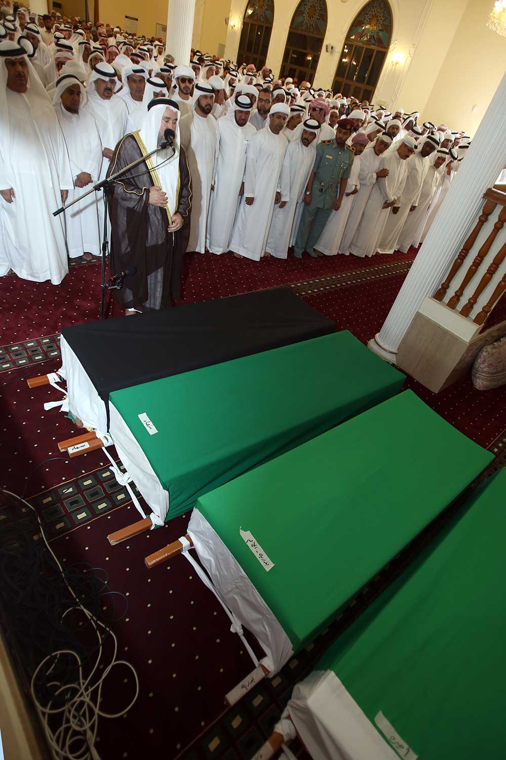 وشوهدت سيارات الشرطة على المداخل المؤدية للمسجد لتنظيم عملية المرور وسط ازدحام هائل، كما رافقت سيارات تابعة لإدارة المرور سيارات الإسعاف التي نقلت الجثامين إلى المقبرة، وبقيت سيارات أخرى في الطرق الرئيسة لتنظيم عملية المرور إلى المقبرة.