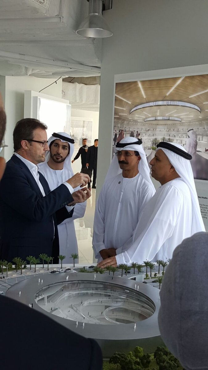 استمع مطر الطاير المدير العام ورئيس مجلس المديرين في هيئة الطرق والمواصلات وسلطان بن سليم رئيس مجلس الإدارة والرئيس التنفيذي لمجموعة «موانئ دبي العالمية» صباح اليوم لشرح حول مشروع الهايبرلووب من الرئيس التنفيذي للشركة في برج خليفة.