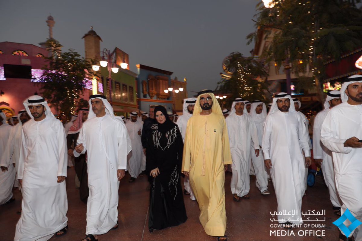 وشهد صاحب السمو الشيخ محمد بن راشد آل مكتوم وإلى جانبه سمو الشيخ حمدان بن محمد بن راشد آل مكتوم ومعالي الدكتورة أمل عبدالله القبيسي رئيسة المجلس الوطني الاتحادي والفريق سمو الشيخ سيف بن زايد آل نهيان نائب رئيس مجلس الوزراء وزير الداخلية وسمو الشيخ أحمد بن سعيد آل مكتوم رئيس هيئة دبي للطيران الرئيس الأعلى لمجموعة طيران الإمارات قبيل جولته في أرجاء المدينة السياحية الثقافية الترفيهية الممتدة على مساحة تقدر بأكثر من 30 مليون قدم مربع على الطريق بين دبي وأبوظبي .. شهد سموه ومرافقوه المسرحية الهندية الاستعراضية "جان .. إي- جيغار" التي قدمتها مجموعة كبيرة من الفنانين والفنانات الشهيرات على مسرح "راج محل" في مبنى "بوليوود باركس دبي" تحية الى صاحب السمو نائب رئيس الدولة رئيس مجلس الوزراء حاكم دبي والحضور .