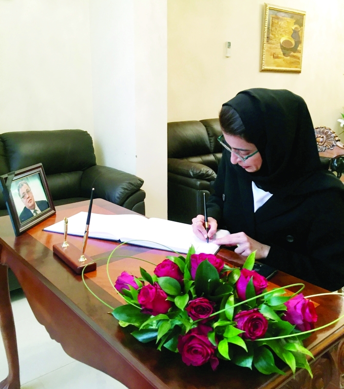 كما قدّم معالي الدكتور أحمد بالهول الفلاسي، وزير الدولة لشؤون التعليم العالي، واجب عزاء شعب الإمارات إلى غوشا بواشيدزه، القنصل العام لجمهورية روسيا الاتحادية لدى الدولة، في مقر القنصلية بدبي، في وفاة السفير الروسي لدى تركيا أندريه كارلوف، وسجل معالي الدكتور الفلاسي كلمة في دفتر العزاء خلال الزيارة التي قام بها إلى مقر القنصلية الروسية في دبي، أكد من خلالها موقف الإمارات الثابت من نبذ العنف والتطرف بأشكاله كافة، ورفضها هذا العمل الغادر، وأعرب عن أسفه لمقتل السفير الروسي في أنقرة، وأن الإمارات تدين بشدة أي عمل متطرف في أي بقعة في العالم يطول أبرياء وتراق فيه دماء، وقدّم واجب العزاء للشعب الروسي، مؤكداً أن هذا العمل يتنافى مع جميع الأعراف والقيم الإنسانية والقوانين الدولية التي تحمى الدبلوماسيين والمبعوثين الدوليين.