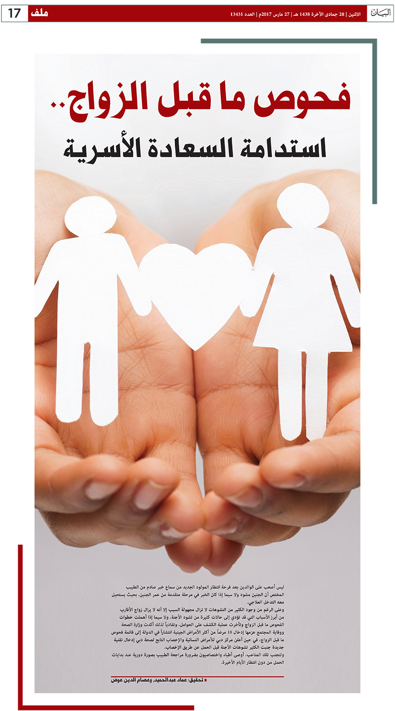 لمشاهدة ملف " فحوص ما قبل الزواج" بصيغة الــ pdf اضغط هنا