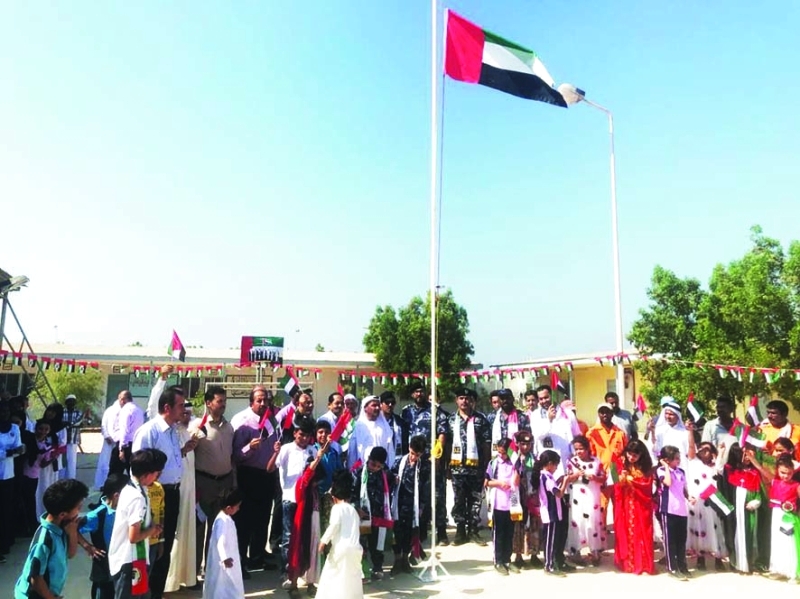 احتفل أهالي جزيرة أبوموسى وسط فرحة كبيرة برفع علم الدولة على أكبر سارية علم في الجزيرة بحضور والي الجزيرة خليفة محمد بوغانم وعدد من مدراء فروع الدوائر الحكومية لإمارة الشارقة بالجزيرة والهيئة التدريسية والإدارية بالمدرسة والطلبة وكافة العاملين والأهالي.