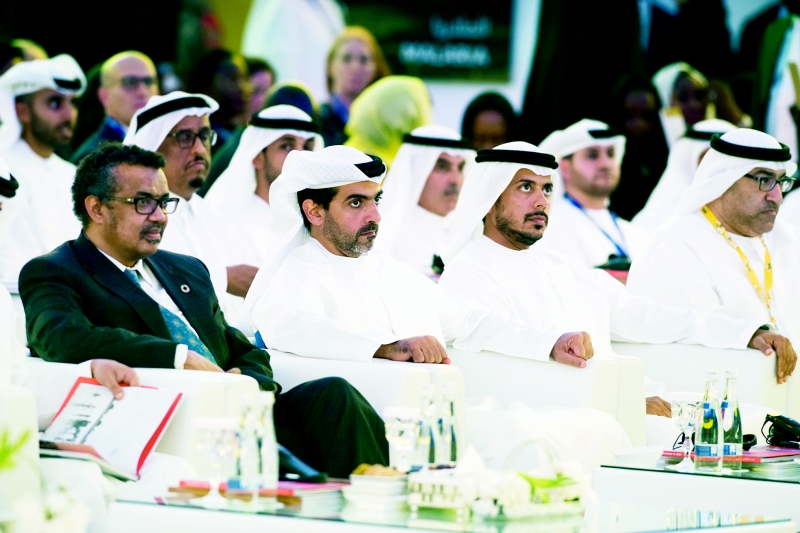 وسمو الشيخ حامد بن زايد آل نهيان رئيس ديوان ولي عهد أبوظبي، وسمو الشيخ خالد بن زايد آل نهيان رئيس مجلس إدارة مؤسسة زايد العليا للرعاية الإنسانية وذوي الاحتياجات الخاصة، ومعالي الشيخ نهيان بن مبارك آل نهيان وزير التسامح، والشيخ سلطان بن طحنون آل نهيان عضو المجلس التنفيذي، ومعالي عبدالرحمن بن محمد العويس وزير الصحة ووقاية المجتمع وزير الدولة لشؤون المجلس الوطني، ومعالي ريم بنت إبراهيم الهاشمي وزيرة دولة لشؤون التعاون الدولي، والدكتورة مها تيسير بركات وعدد من وزراء الصحة في الدول العربية والاجنبية.