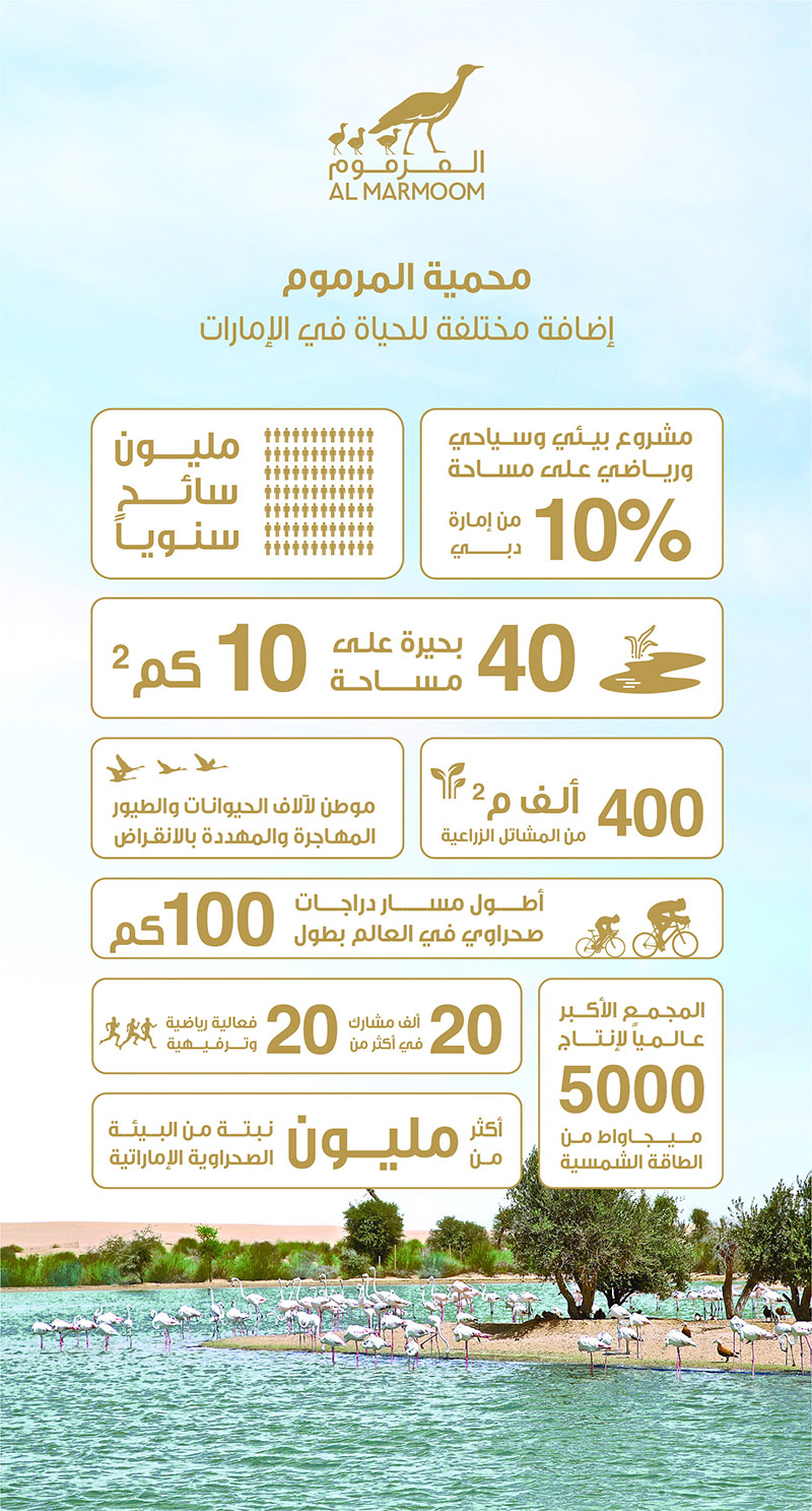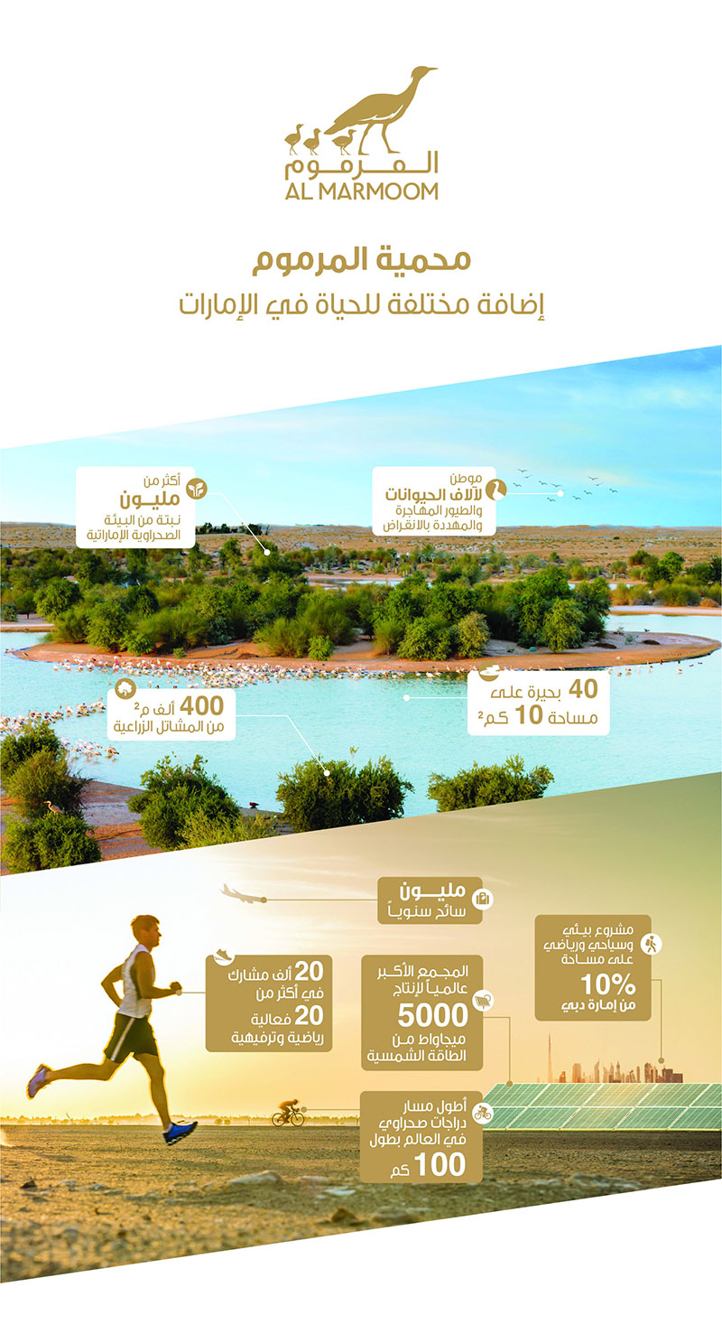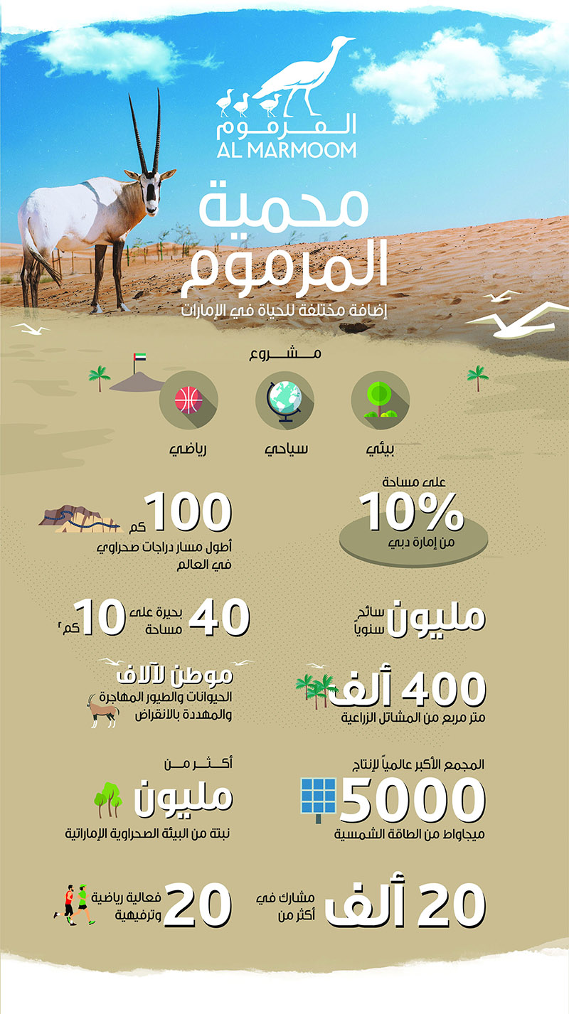 وتعد محمية المرموم أكبر مشروع بيئي وسياحي وترفيهي مستدام في الدولة يهدف إلى تسليط الضوء على واحدة من أهم المحميات الصحراوية في الإمارات والمنطقة التي تحتضن حياة فطرية تعد من بين الأغنى والأكثر تنوعاً، كما توفر ملاذاً لتشكيلة كبيرة من الحيوانات والطيور المهددة بالانقراض علاوة على استضافتها العديد من البرامج البيئية والمشاريع السياحية المبتكرة والمتنوعة التي تستهدف مختلف فئات المجتمع مشكلة بذلك مشروعاً رائداً من نوعه يتبنى مفهوم الترفيه البيئي متعدد المجالات والاهتمامات ويترجمه من خلال مشاريع حيوية تجمع بين التثقيف والوعي البيئي وبين السياحة والترفيه.