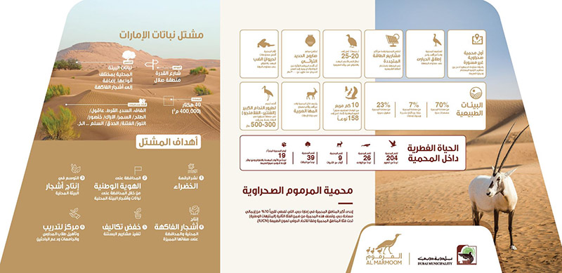 تعد «محمية المرموم» أول محمية صحراوية غير مسورة في الدولة مفتوحة للجمهور تم مضاعفة مساحتها نحو ثلاث مرات.. وتستهدف المحمية استقطاب مليون زائر سنوياً.