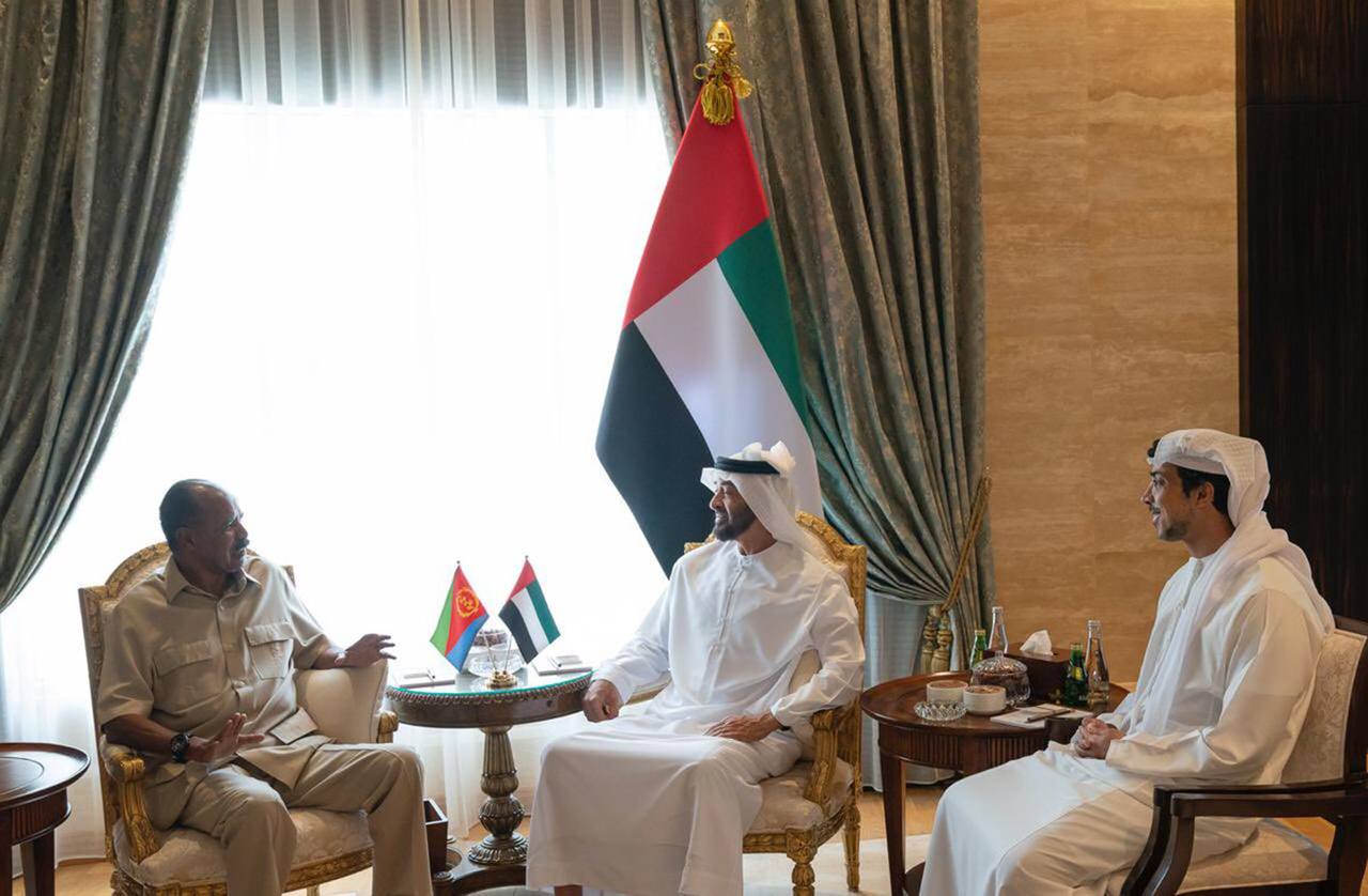 ورحب سموه، خلال اللقاء الذي حضره سمو الشيخ منصور بن زايد آل نهيان، نائب رئيس مجلس الوزراء وزير شؤون الرئاسة، بزيارة الرئيس الأريتري إلى الدولة، معرباً عن تطلعه إلى أن تسهم هذه الزيارة في دعم علاقات التعاون بين دولة الإمارات وأريتريا خلال المرحلة المقبلة، بما يعود بالخير على البلدين وشعبيهما الصديقين.