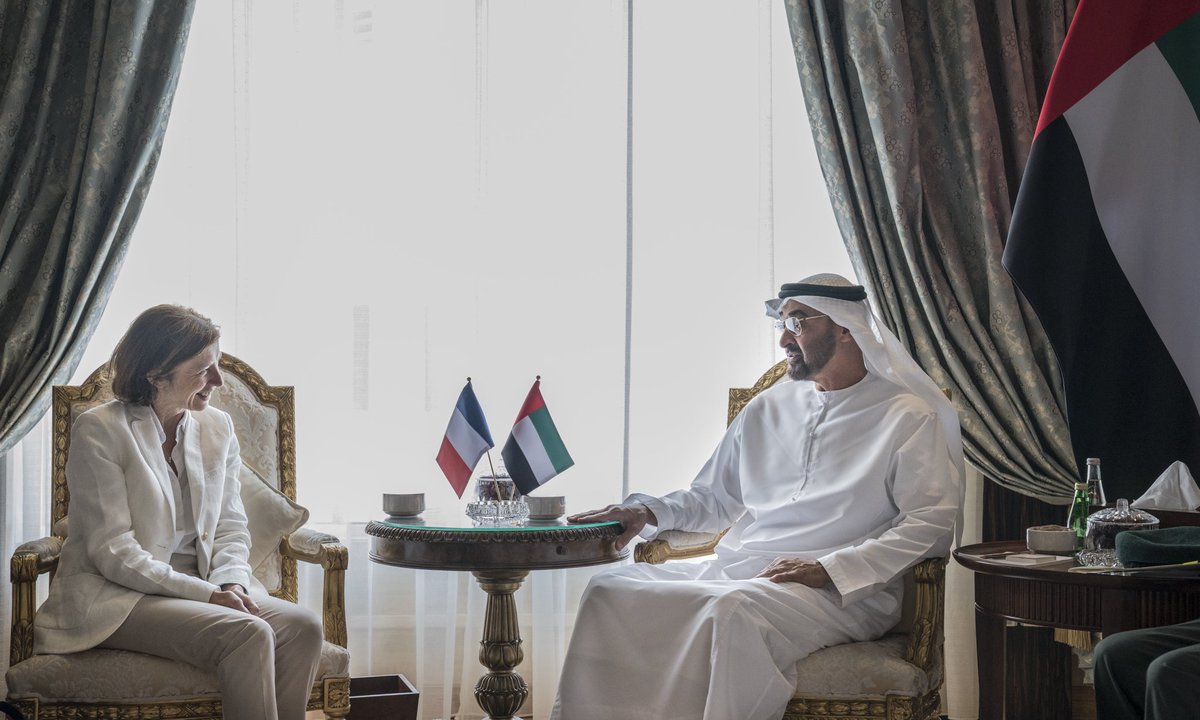 واستعرض الجانبان عدداً من القضايا الإقليمية والدولية ذات الاهتمام المشترك وتبادلا وجهات النظر بشأنها. حضر اللقاء معالي محمد بن أحمد البواردي وزير دولة لشؤون الدفاع، وخلدون خليفة المبارك رئيس جهاز الشؤون التنفيذية، والفريق الركن حمد محمد ثاني الرميثي رئيس أركان القوات المسلحة، ومحمد مبارك المزروعي وكيل ديوان ولي عهد أبوظبي، ولودوفيك بوي سفير الجمهورية الفرنسية لدى الدولة.