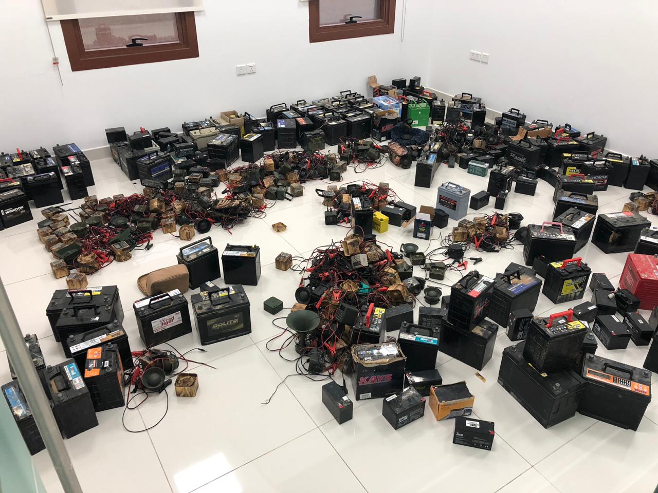 وبلغ المجموع الكلي للمعدات والأدوات التي تمت مصادرتها من أجهزة وسماعات وبطاريات وحقائب 459 قطعة، من بينها 205 أجهزة، و70 سماعة، و181 بطارية، و3 حقائب، وذلك في مناطق عدة، من بينها مسند، وخضيرة، ومليحة، والدورة، والخطم، وعقارب، ومخافز، وطوي السمان، والزبير، وغيرها.