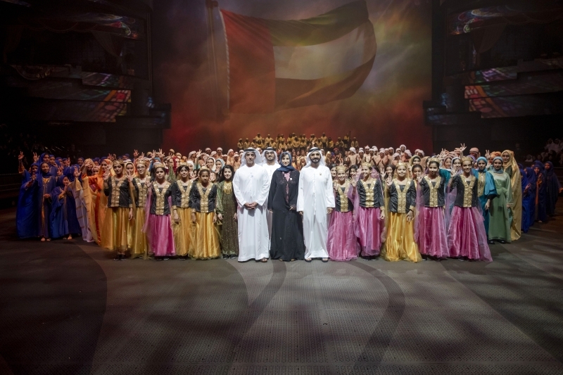 شهد صاحب السمو الشيخ محمد بن راشد آل مكتوم نائب رئيس الدولة رئيس مجلس الوزراء حاكم دبي، رعاه الله، الحفل الذي أقامته وزارة التربية والتعليم في مدينة الحبتور في دبي صباح أمس، وقدم خلاله طلبة المدرسة الإماراتية الملحمة الوطنية الاستعراضية «أسطورة الأب» والتي تحاكي انتقال قبس نور العلم عبر الأزمان في 8 لوحات فنية استعراضية.