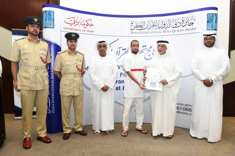 احتفلت جائزة دبي الدولية للقرآن الكريم بتكريم مجموعة من نزلاء المؤسسات العقابية والإصلاحية بدبي من حفظة كتاب الله الكريم الذين شملهم قرار الإعفاء والتخفيف من مدة العقوبة ضمن النظام المتبع في برنامج التحفيظ في المؤسسات العقابية والإصلاحية أحد الفروع الرئيسية لجائزة دبي الدولية للقرآن الكريم ، وذلك بحضور المستشار إبراهيم محمد بو ملحة مستشار صاحب السمو حاكم دبي للشؤون الثقافية والإنسانية رئيس اللجنة المنظمة لجائزة دبي الدولية للقرآن الكريم، واللواء خبير خليل المنصوري مساعد القائد العام لشؤون البحث الجنائي بشرطة دبي والمستشار حمد الخلافي المحامي العام رئيس النيابة الكلية في النيابة العامة والعميد علي محمد الشمالي مدير الإدارة العامة للمؤسسات العقابية والإصلاحية بشرطة دبي وأحمد الزاهد عضو اللجنة المنظمة رئيس وحدة الإعلام بجائزة دبي الدولية للقرآن الكريم وعدد من المسؤولين في شرطة دبي والنيابة العامة.