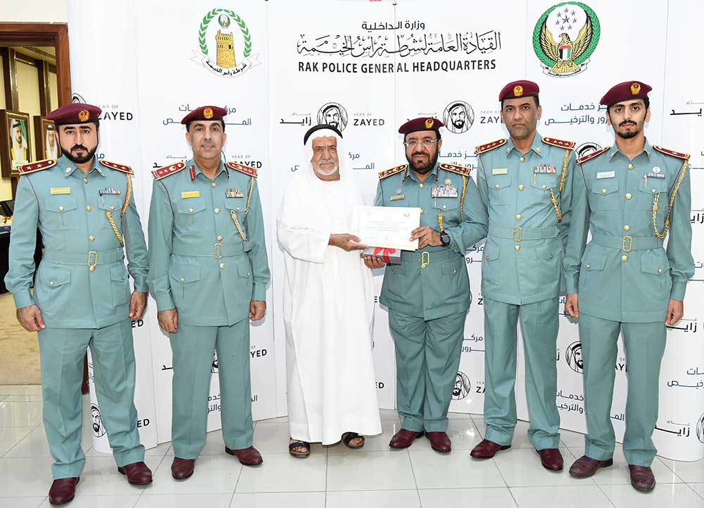 تحقيقاً للتنمية المرورية المستدامة وتحفيزاً وتشجيعاً للسائقين لرفع كفاءتهم والحد من الحوادث المرورية، كرم العميد الدكتور محمد سعيد الحميدي مدير عام العمليات المركزية في شرطة رأس الخيمة بحضور العقيد أحمد الصم النقبي مدير إدارة المرور والدوريات والعقيد عادل علي الغيص مدير إدارة ترخيص الآليات والسائقين المواطن سعيد راشد أحمد بلهون من "كبار المواطنين" ، ضمن السائق المثالي الذي لم يقم بارتكاب أية مخالفات مرورية منذ حصوله على رخصة القيادة في عام 1969 ، خلال الـ 46 عاماً .