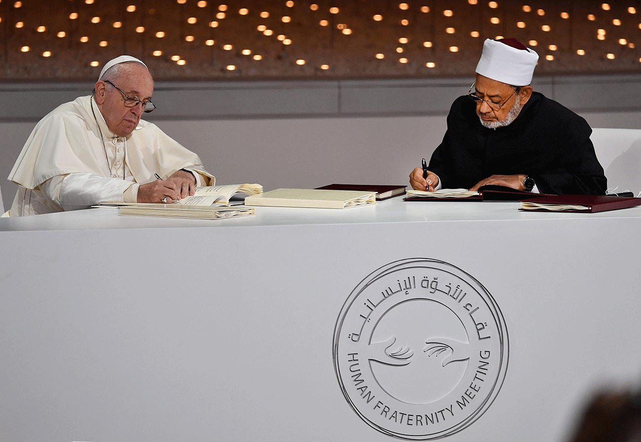 صدر عن " المؤتمر العالمي للأخوة الإنسانية " الذي ينظمه مجلس حكماء المسلمين في أبوظبي برعاية صاحب السمو الشيخ محمد بن زايد آل نهيان ولي عهد أبوظبي نائب القائد الأعلى للقوات المسلحة " وثيقـة الأخــوة الإنســانية من أجل السلام العالمي والعيش المشترك " .. فيما يلي نصها.