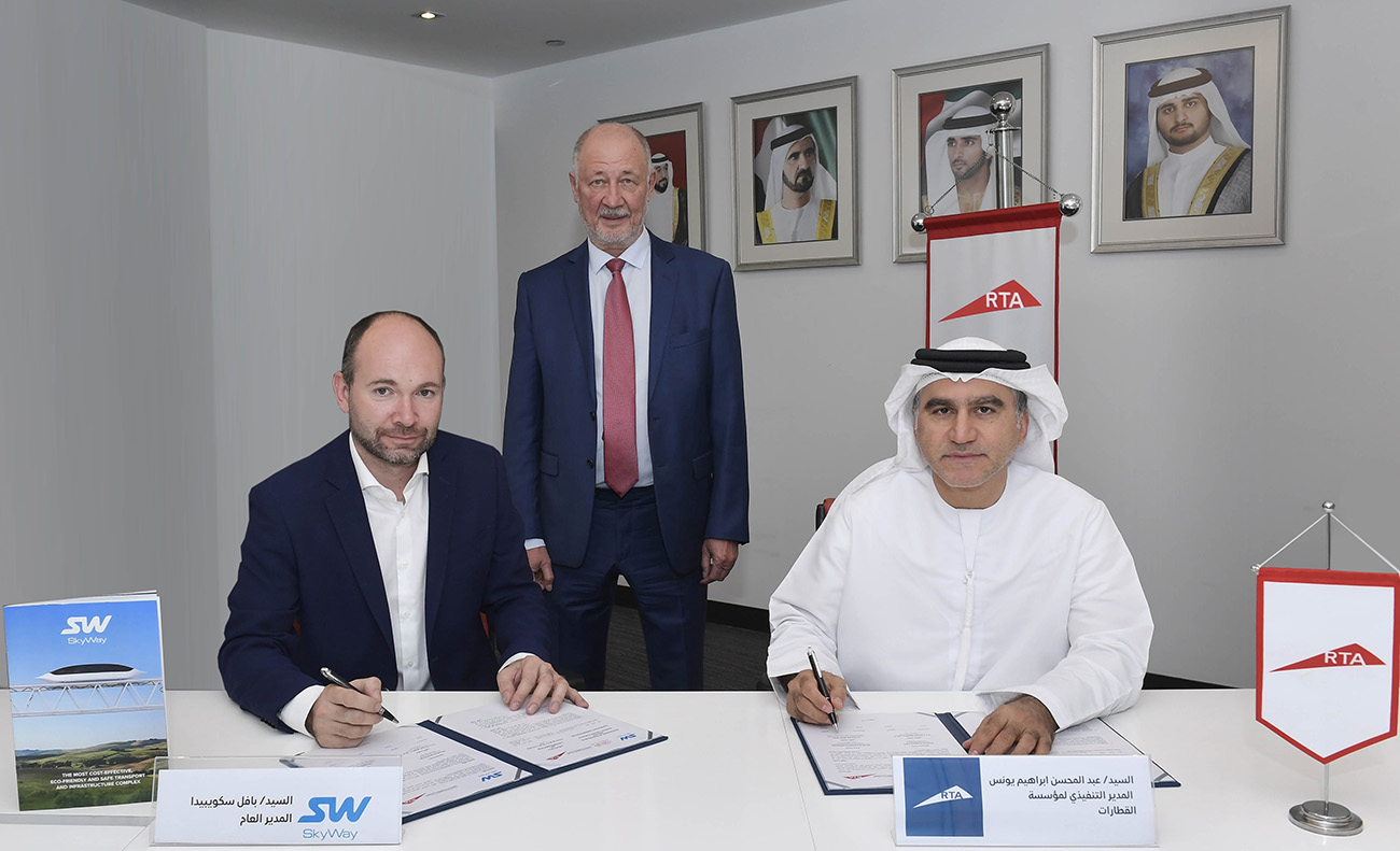 وقعت هيئة الطرق والمواصلات في دبي مذكرة تفاهم مع شركة "سكاي وي غرينتك Skyway Greentech " إحدى الشركات الرائدة في مجال تطوير أنظمة النقل المعلقة على مستوى العالم، وذلك في إطار التعاون في تقديم حلول مستقبلية للحد من الاختناقات المرورية عبر تطوير شبكات نقل وحدات النقل المعلقة التي تعمل بتقنية أنظمة النقل المعلّقة، مما يضمن السرعة والأمان والتوفير في الموارد.