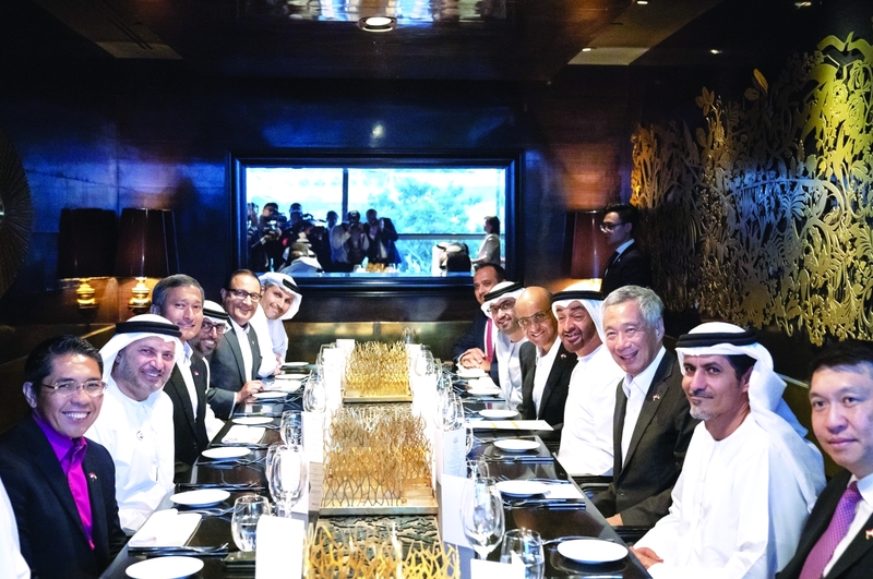 حضر صاحب السمو الشيخ محمد بن زايد آل نهيان، ولي عهد أبوظبي نائب القائد الأعلى للقوات المسلحة، مأدبة عشاء أقامها لي هسين لونغ، رئيس وزراء جمهورية سنغافورة الصديقة، تكريماً لسموه والوفد المرافق، بمناسبة زيارته الرسمية إلى سنغافورة.