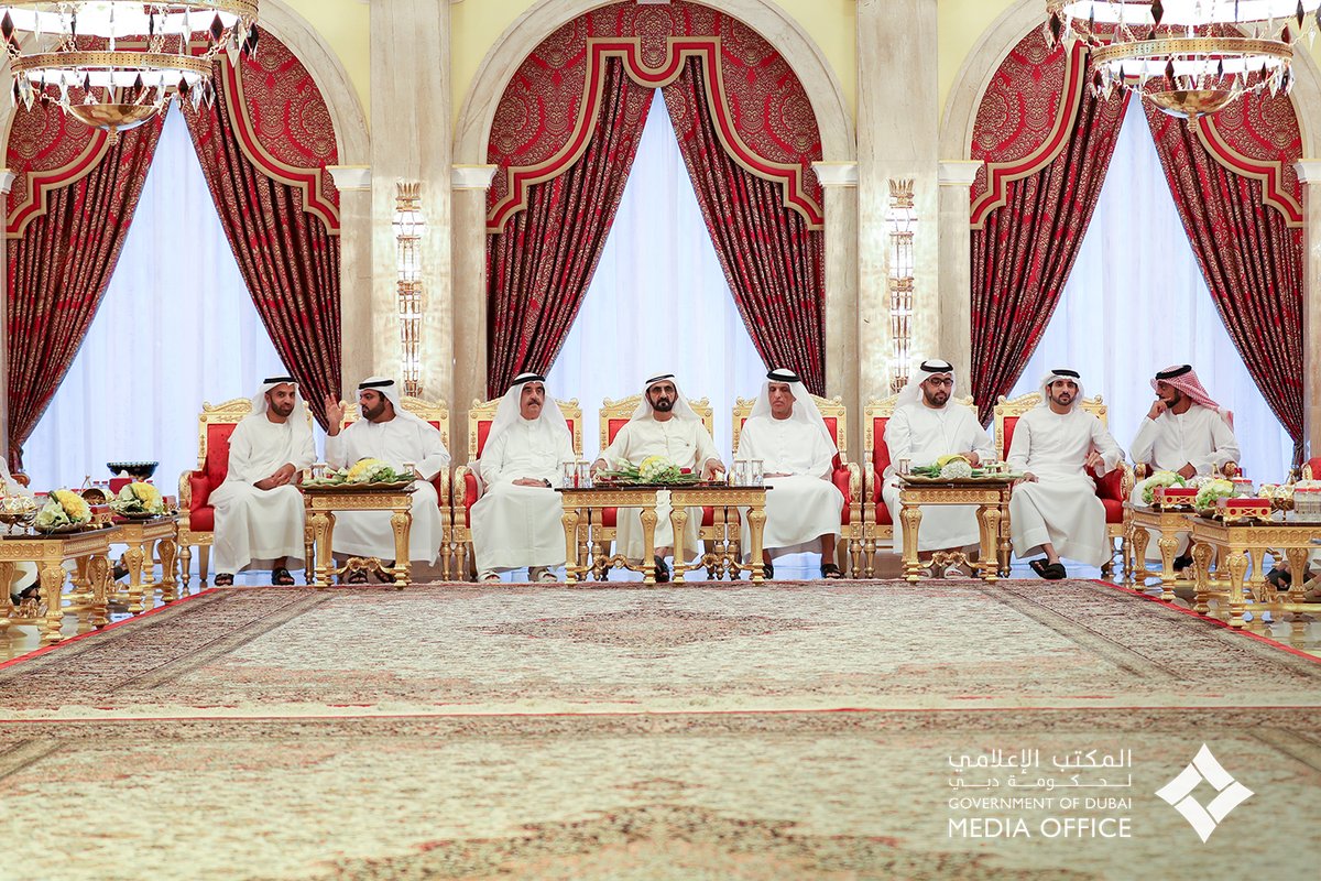 استقبل صاحب السمو الشيخ محمد بن راشد آل مكتوم نائب رئيس الدولة رئيس مجلس الوزراء حاكم دبي "رعاه الله" في قصر سموه في زعبيل مساء اليوم صاحب السمو الشيخ سعود بن راشد المعلا عضو المجلس الأعلى حاكم أم القيوين وصاحب السمو الشيخ سعود بن صقر القاسمي عضو المجلس الأعلى حاكم رأس الخيمة، حيث تبادل سموهم التهاني والتبريكات بالشهر الفضيل، راجين الله تبارك وتعالى أن يجعله شهر رحمة وخير وبركات على قيادتنا المعطاءة وشعبنا ودولتنا العزيزة.