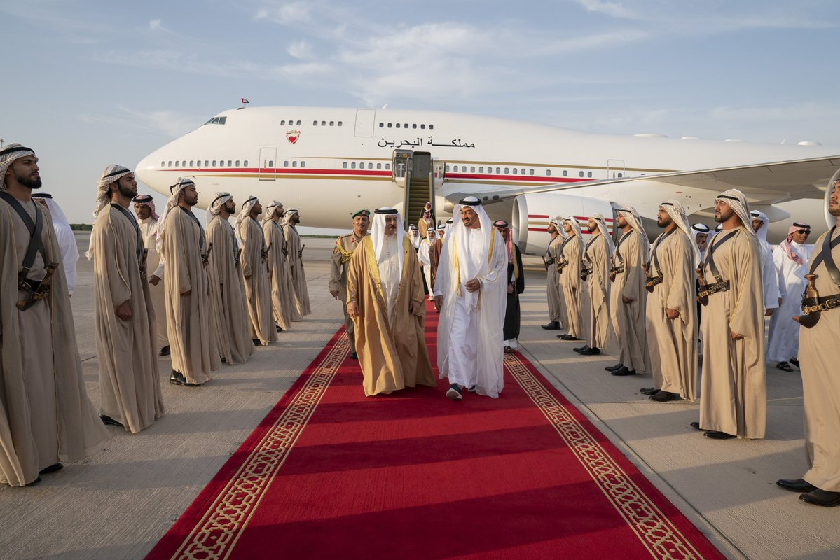 استقبل صاحب السمو الشيخ محمد بن زايد آل نهيان، ولي عهد أبوظبي نائب القائد الأعلى للقوات المسلحة، اليوم الملك حمد بن عيسى بن سلمان آل خليفة ملك البحرين لدى وصوله مطار الرئاسة بأبوظبي في زيارة الى الدولة.