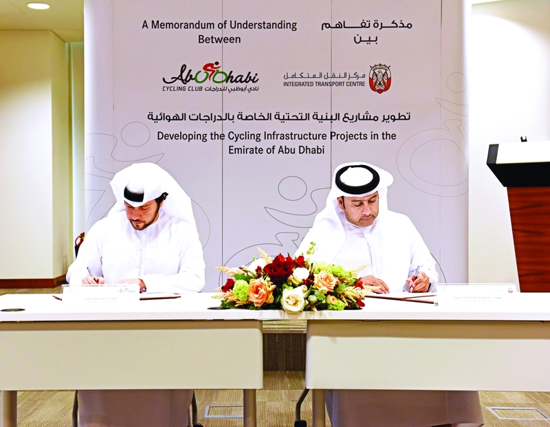 وقع مركز النقل المتكامل ونادي أبوظبي للدراجات اتفاقية تعاون بشأن تطوير مشاريع البنية التحتية المتعلقة بالدراجات الهوائية، وتعزيز ثقافة التنقل المستدام والنشط وإبراز الانعكاسات الإيجابية التي يتركها على البيئة والمجتمع.