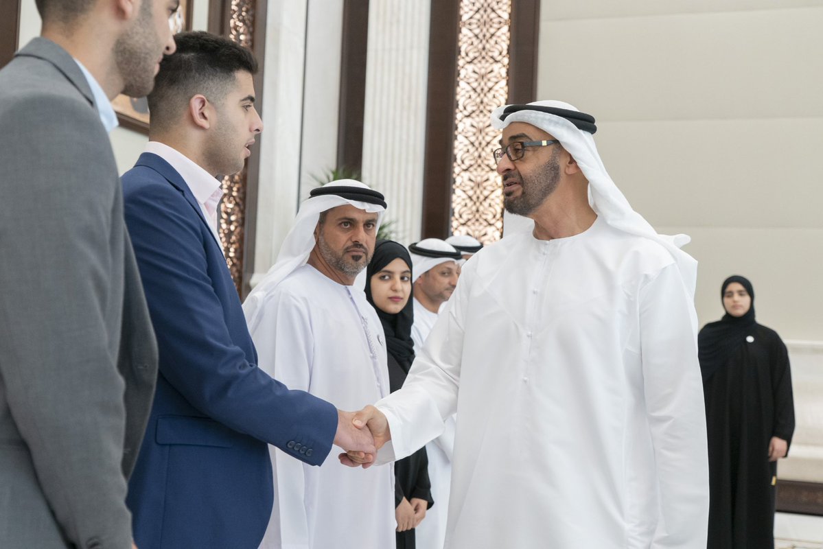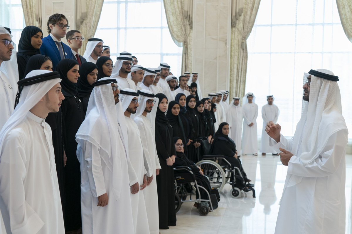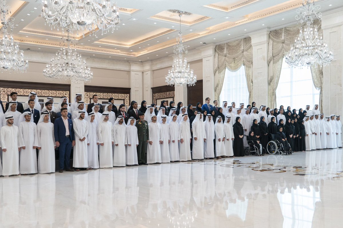 استقبل صاحب السمو الشيخ محمد بن زايد آل نهيان ولي عهد أبوظبي نائب القائد الأعلى للقوات المسلحة اليوم الأوائل من الطلاب والطالبات في الصف الثاني عشر للعام الدراسي لعام 2018 ــ 2019 وأولياء أمورهم وعددا من القيادات التعليمية والتربوية.