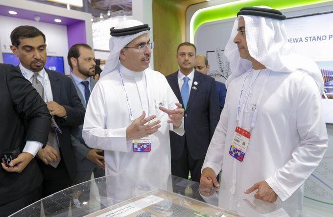 واستمع الفريق سمو الشيخ سيف بن زايد آل نهيان لشروحات من سعيد محمد الطاير حول أحدث مشروعات ومبادرات الهيئة المبتكرة؛ ومن أبرزها مجمع محمد بن راشد آل مكتوم للطاقة الشمسية، الذي ستبلغ طاقته الإنتاجية 5000 ميجاوات بحلول عام 2030، منها 4000 ميجاوات بتقنية الألواح الكهروضوئية و1000 ميجاوات بتقنية الطاقة الشمسية المركّزة، باستثمارات إجمالية تصل إلى 50 مليار درهم. وسيسهم المجمع عند اكتماله في تخفيض أكثر من 6.5 ملايين طن من انبعاثات الكربون سنوياً.
