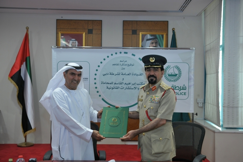 وقّعت القيادة العامة لشرطة دبي مذكرة تفاهم مع مكتب إبراهيم القاسم للمحاماة والاستشارات القانونية، والذي سيتولى الدفاع عن القضايا المطروحة أمام القضاء بدون مقابل، وذلك لمختلف القضايا الواردة للإدارة العامة لحقوق الإنسان والمتعلقة بضحايا العنف الأسري من الأطفال والنساء وضحايا الاتجار بالبشر.
