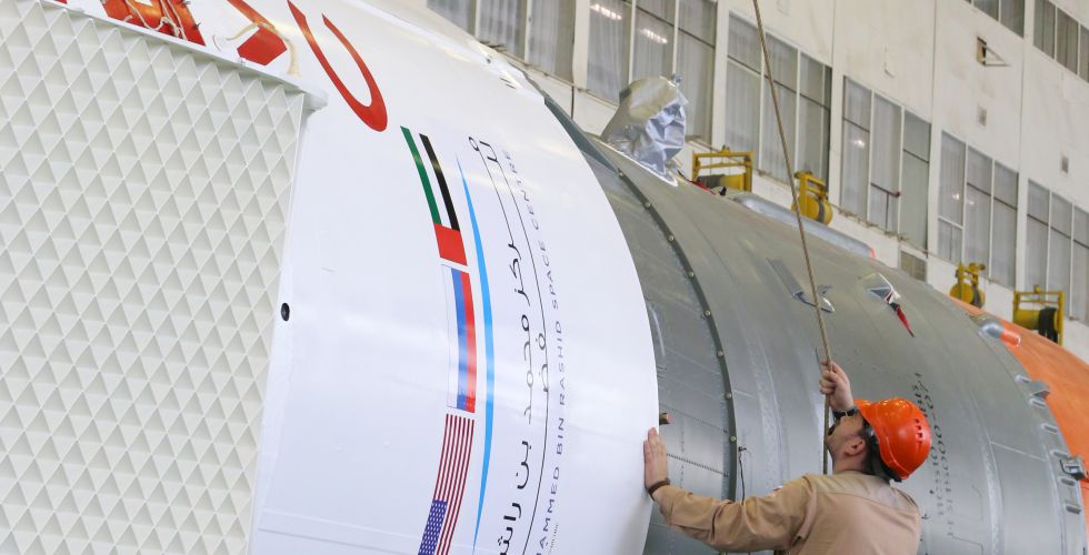 بالصور والفيديو.. علم #الإمارات يزين الصاروخ "سويوز أف جي" الذي سيحمل #هزاع_المنصوري إلى الفضاءhttps://t.co/JXIt4Mhfo2@MBRSpaceCentre @astro_hazzaa #طموح_زايد #البيان_القارئ_دائما pic.twitter.com/9K5ZeLIzfH