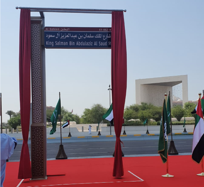 بتوجيهات صاحب السمو الشيخ خليفة بن زايد آل نهيان رئيس الدولة، حفظه الله، وأوامر صاحب السمو الشيخ محمد بن زايد آل نهيان ولي عهد أبوظبي نائب القائد الأعلى للقوات المسلحة، وتكريماً وتقديراً لإنجازات خادم الحرمين الشريفين الملك سلمان بن عبد العزيز آل سعود، ملك المملكة العربية السعودية الشقيقة، شهد سمو الشيخ هزاع بن زايد آل نهيان، نائب رئيس المجلس التنفيذي لإمارة أبوظبي، إعادة تسمية شارع المرسى (سابقاً) باسم "شارع الملك سلمان بن عبدالعزيز آل سعود"، وذلك بحضور سمو الشيخ خالد بن محمد بن زايد آل نهيان، عضو المجلس التنفيذي لإمارة أبوظبي ورئيس اللجنة التنفيذية، ، وتركي الدخيل السفير السعودي لدى الدولة.