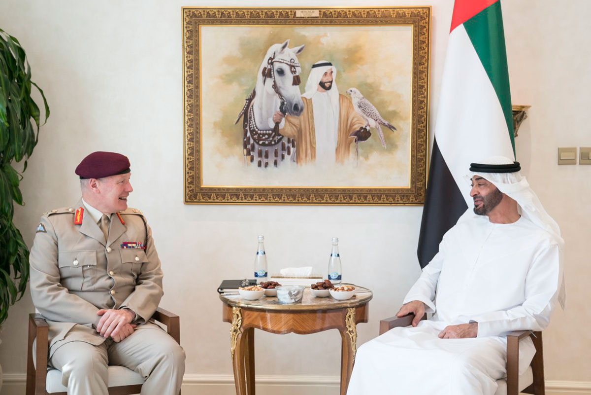 استقبل صاحب السمو الشيخ محمد بن زايد آل نهيان ولي عهد أبوظبي نائب القائد الأعلى للقوات المسلحة الفريق السير جون لوريمر كبير مستشاري وزارة الدفاع للشرق الأوسط في المملكة المتحدة.