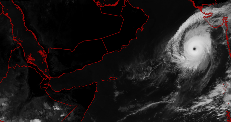 ويتحرك حالياً باتجاه غرب – شمال غرب إلى وسط بحر العرب، ليتعمق إلى إعصار مداري من الدرجة الخامسة حيث تقدر سرعة الرياح حول مركزه 255 - 265 كم/سا خلال الـ 24 ساعة القادمة.