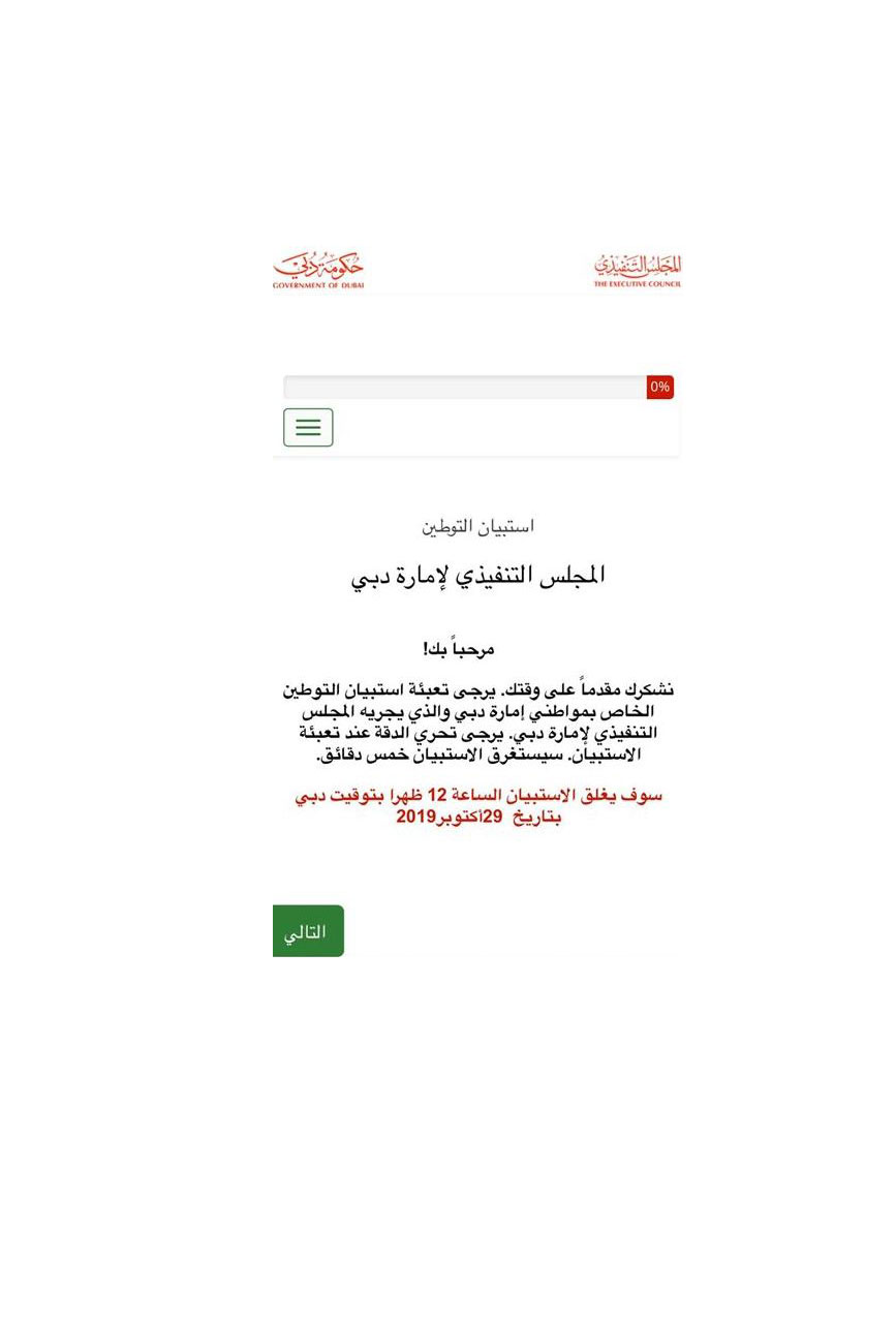 ويهدف الاستبيان إلى حصر وتنقيح بيانات المواطنين الباحثين عن عمل من إمارة دبي بشكل تفصيلي مما يتيح الفرصة للوقوف على احتياجاتهم الوظيفية، حيث سيتم استخدام مخرجات هذا الاستبيان في ربط الباحثين عن عمل بالفرص الوظيفية المتاحة في القطاعين الحكومي والخاص بأسلوب قائم على الدقة في البيانات ومراعاة الكفاءات والمهارات المكتسبة، وأطلق الاستبيان منذ يوم الثلاثاء 22 أكتوبر الجاري ويستمر حتى ظهر يوم الثلاثاء 29 أكتوبر الجاري.