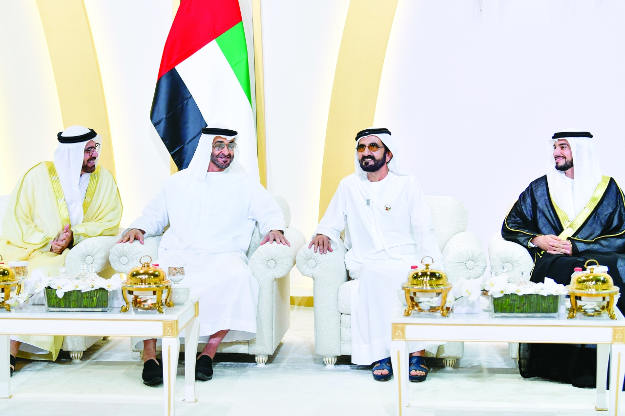 وحضر الحفل الذي أقيم في مركز دبي التجاري العالمي، عدد من الشيوخ والوزراء وأعيان البلاد وكبار المسؤولين في الدولة من مدنيين وعسكريين، إلى جانب أقارب العروسين.