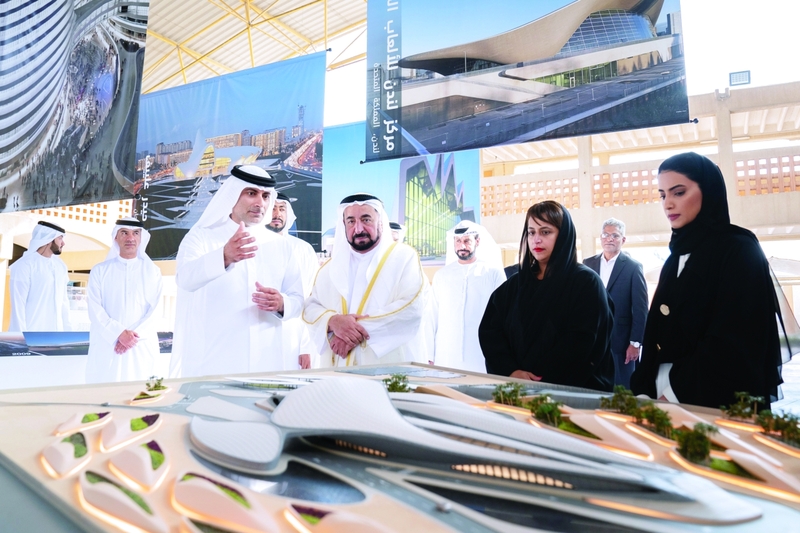 واطلع سموه على المعرض المخصص لتصاميم مقر شركة الشارقة للبيئة «بيئة» ومجموعة من المشاريع المختارة من تصاميم المهندسة المعمارية الراحلة زها حديد التي تم تنفيذها في مختلف بلدان العالم، وأصبحت علامة فارقة لتلك البلدان لروعة تصميمها ومراعاتها للبيئة.