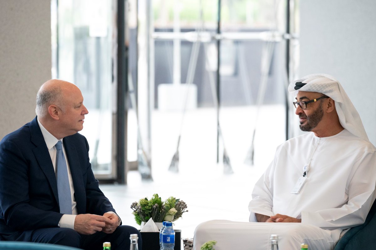 حضر اللقاءين الدكتور سلطان بن أحمد الجابر وزير دولة "الرئيس التنفيذي لشركة بترول أبوظبي الوطنية (أدنوك) ومجموعة شركاتها" ومحمد مبارك المزروعي وكيل ديوان ولي عهد أبوظبي.