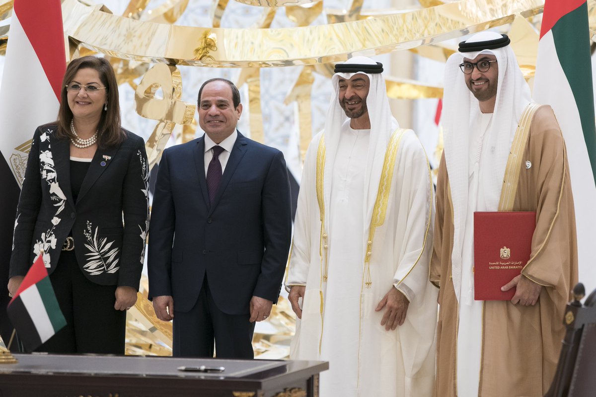وقال صاحب السمو الشيخ محمد بن زايد في حسابه على تويتر " أطلقت مع أخي الرئيس عبدالفتاح السيسي منصة استثمارية استراتيجية مشتركة بين الإمارات ومصر بقيمة 20 مليار دولار لتنفيذ مشاريع حيوية في مجالات لها جدواها الاقتصادية والاجتماعية الكبيرة لبلدينا وشعبينا الشقيقين".