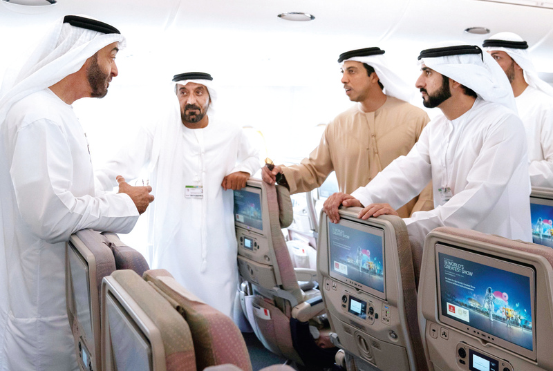 تفقد كل من صاحب السمو الشيخ محمد بن زايد آل نهيان، ولي عهد أبوظبي نائب القائد الأعلى للقوات المسلحة، وسمو الشيخ حمدان بن محمد بن راشد آل مكتوم، ولي عهد دبي، وسمو الشيخ منصور بن زايد آل نهيان، نائب رئيس مجلس الوزراء وزير شؤون الرئاسة، طائرة الإمارات «الإيرباص A380» العملاقة التي تعرضها الناقلة في معرض دبي الدولي 2019 واصطحبهم في الجولة سمو الشيخ أحمد بن سعيد آل مكتوم، الرئيس الأعلى الرئيس التنفيذي لطيران الإمارات والمجموعة.