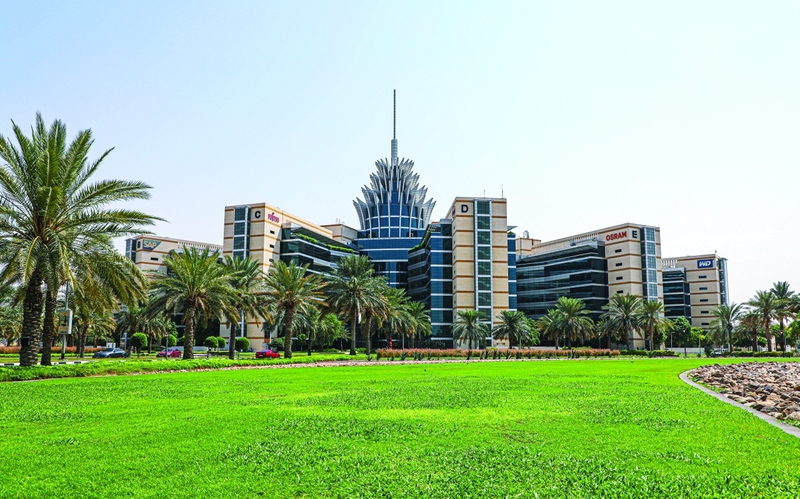 ما أن تنعطف يميناً من شارع الشيخ محمد بن زايد إلى مدخل سلطة واحة دبي للسيليكون، حتى تستقبلك المسطحات الخضراء المنسّقة بتقنيات ذكية مستدامة على جانبي الطريق، والتي تبلغ مساحتها حالياً 1.2 مليون متر مربع، وتعانق نظرك صفوف جميلة متناسقة من أشجار النخيل، الخضراء نهاراً المتلألئة ليلاً بالأضواء، الممتدة يميناً وشمالاً عند كل دوار، وتحيط بالمبنى الرئيسي للواحة، الذي يتألّق ليلاً كتاج أزرق.. المبادرات التي أطلقتها الواحة مع العديد من المزايا الأخرى للقاطنين والعاملين أسهمت في جعل «دبي للسيليكون» واحة خضراء مستدامة وإحدى أفضل الوجهات للعيش والعمل في الدولة.