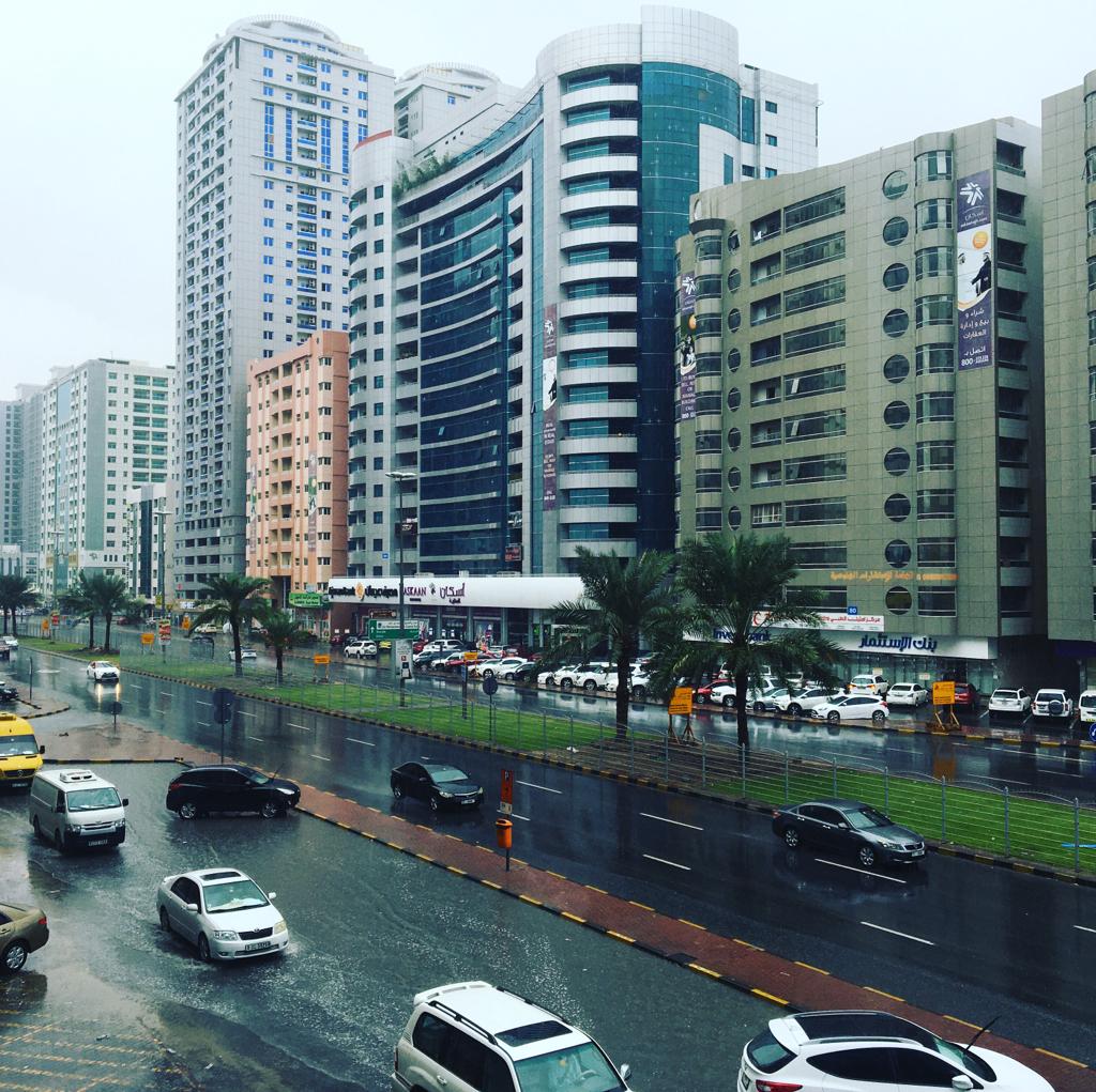 شهدت عجمان صباح أمس هطول أمطار غزيرة ومتوسطة مصحوبة برياح متوسطة في بعض المناطق وأدى هطول الأمطار الكثيفة إلى تأثر بعض المناطق السكنية مثل البستان والراشدية والجرف ، حيث غمرت المياه الطرق الرئيسية والدوارات ، تأثرت الحركة المرورية في بعض المناطق نسبة لتجمعات المياه على الطرقات الداخلية مثل شارع عبدالله بن عبود في منطقة الراشدية، وشوارع في منطقة الجرف السكنية نتيجة لتجمع المياه على الدورات.