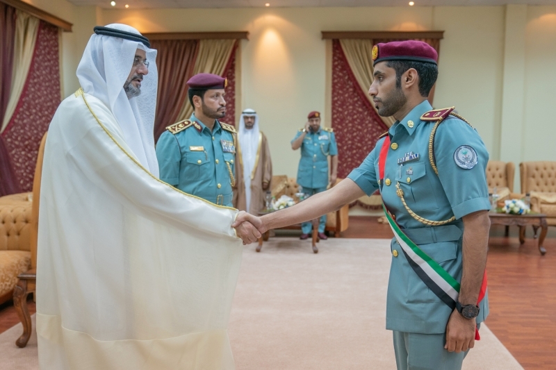 وكان سمو ولي عهد الشارقة قد صافح قبيل حفل التخريج ضباط شرطة الشارقة الذي شملهم قرار الترقية إلى رتبهم التي تلي رتبهم الحالية والبالغ عددهم 108 ضباط هنأهم خلالها بهذه الترقية ودعاهم إلى بذل المزيد من العطاء وتطوير معارفهم ومهاراتهم، متمنياً لهم التوفيق في مهام عملهم، وتفضل سموه بالتقاط صورة تذكارية مع الضباط.
