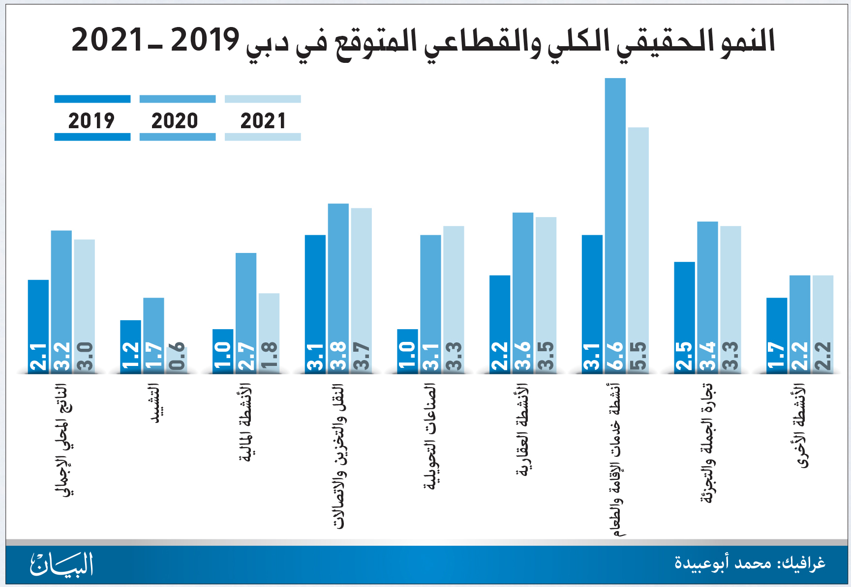 جاء ذلك بمناسبة إعلان دائرة التنمية الاقتصادية في دبي التوقعات أن يحقق الناتج المحلي الإجمالي لإمارة دبي معدل نمو يبلغ 2.1% في عام 2019 و3.2% و3% لعامي 2020 و 2021 على التوالي، وتأخذ هذه التوقعات بعين الاعتبار آخر التطورات في وتيرة النمو العالمي خلال الفترة القصيرة والمتوسطة الأمد.
